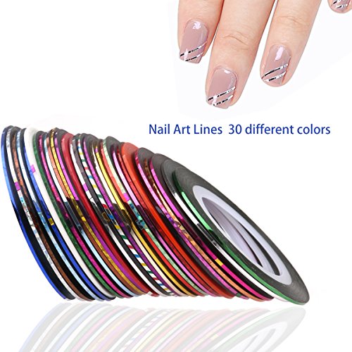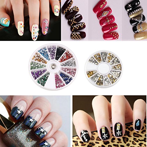 RUIMIO 30 Nail Tape, 15 Nail Art Brush, 12 Colors Nail Rhinestones, 3D Nail Art Gold / Silver Studs