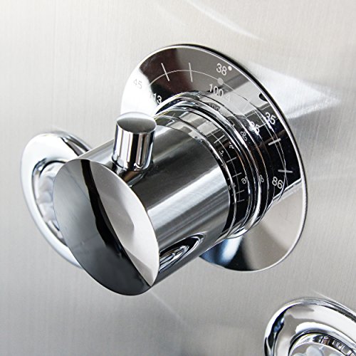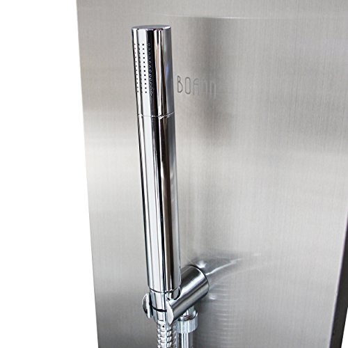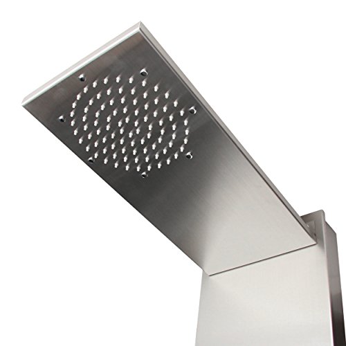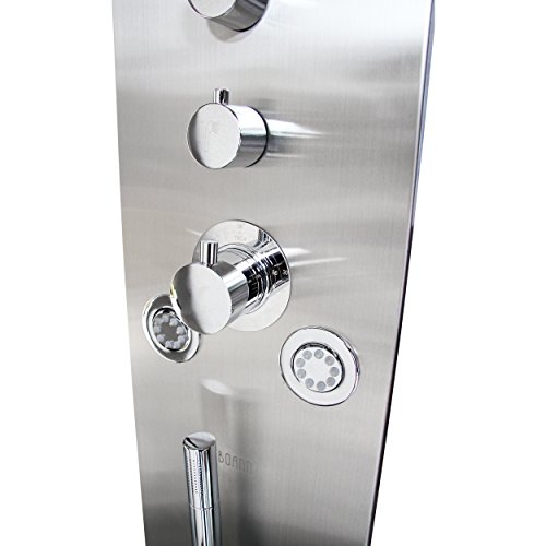 BOANN BNSPS903 Stainless Steel Rainfall Shower Panel System with Hand Shower, 5 Adjustable Jets and Thermostat Control, Brushed Stainless Finish
