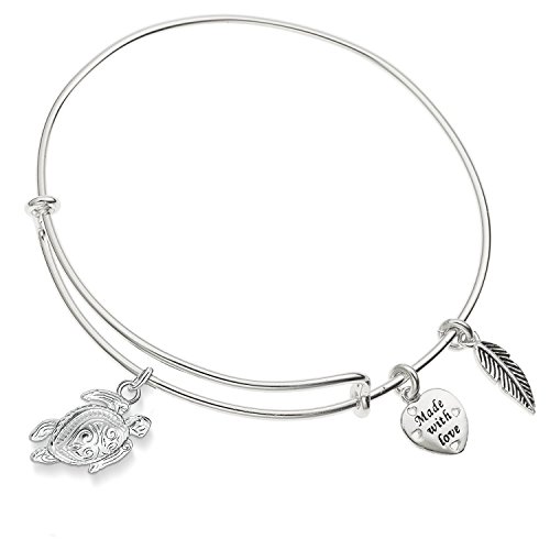 Enni of York Tortoise,Sea Turtle Charm Expandable Ani-Silver Bangle Bracelet