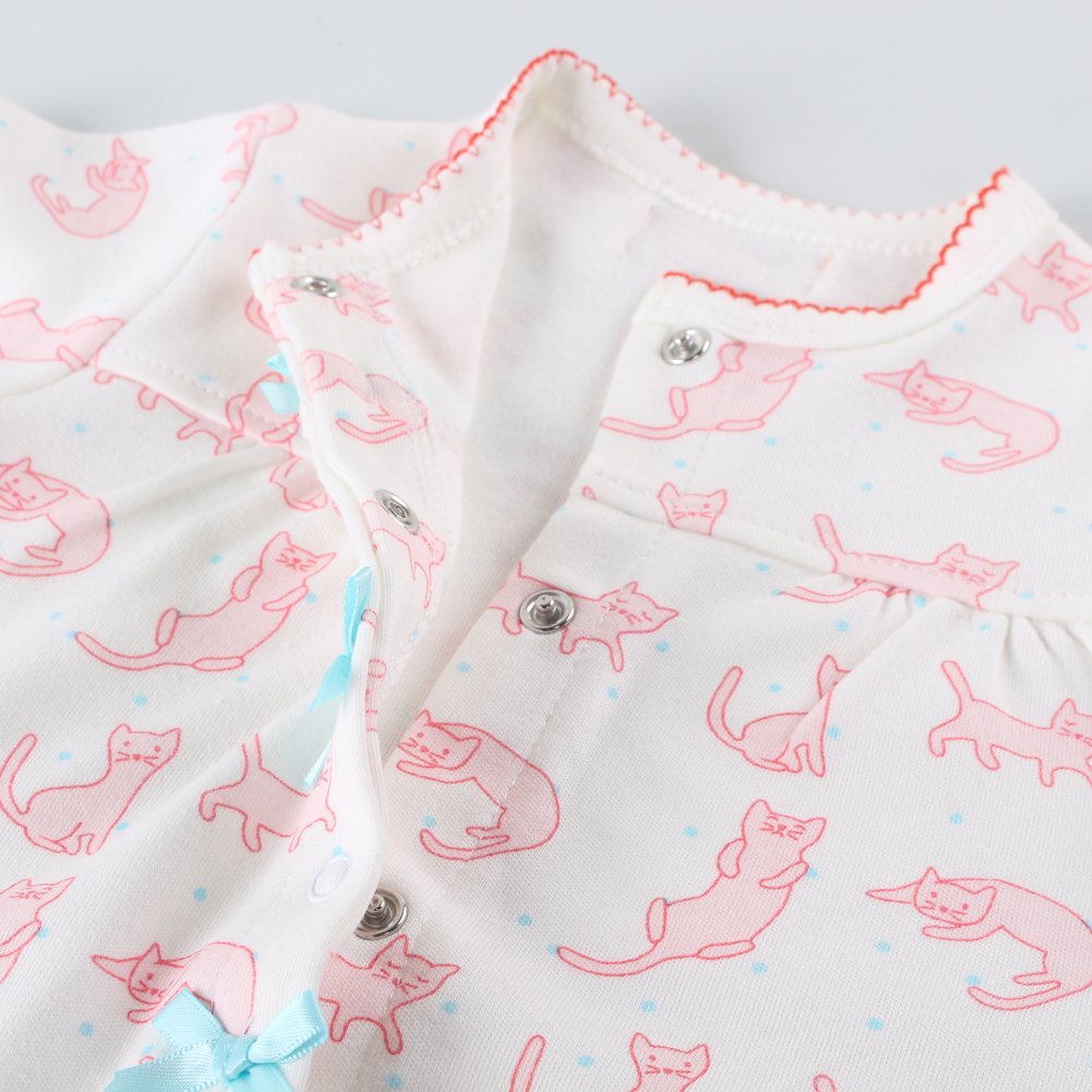 Lovely cat's full pattern long sleeve front opening coverall, casual ribbon points casually ♪