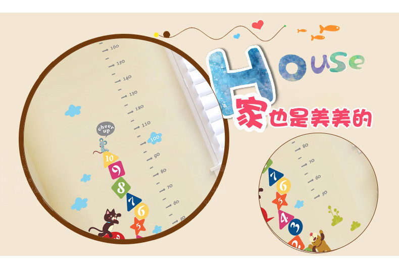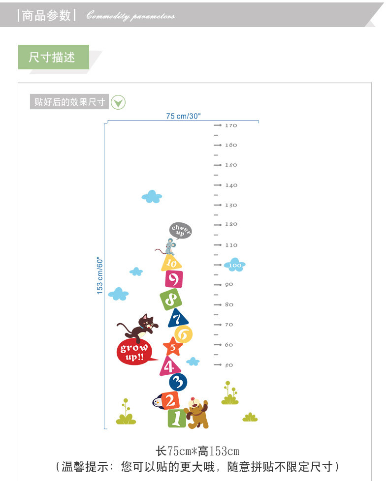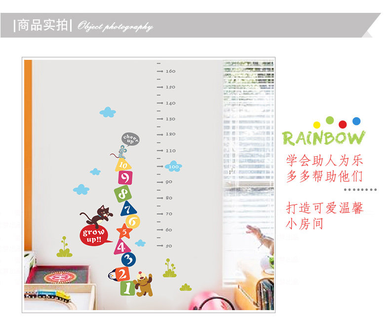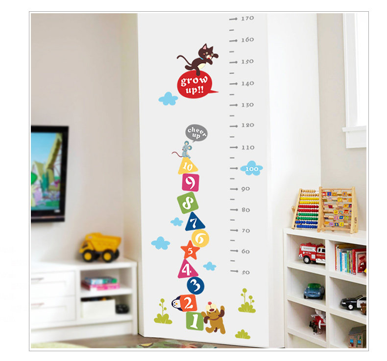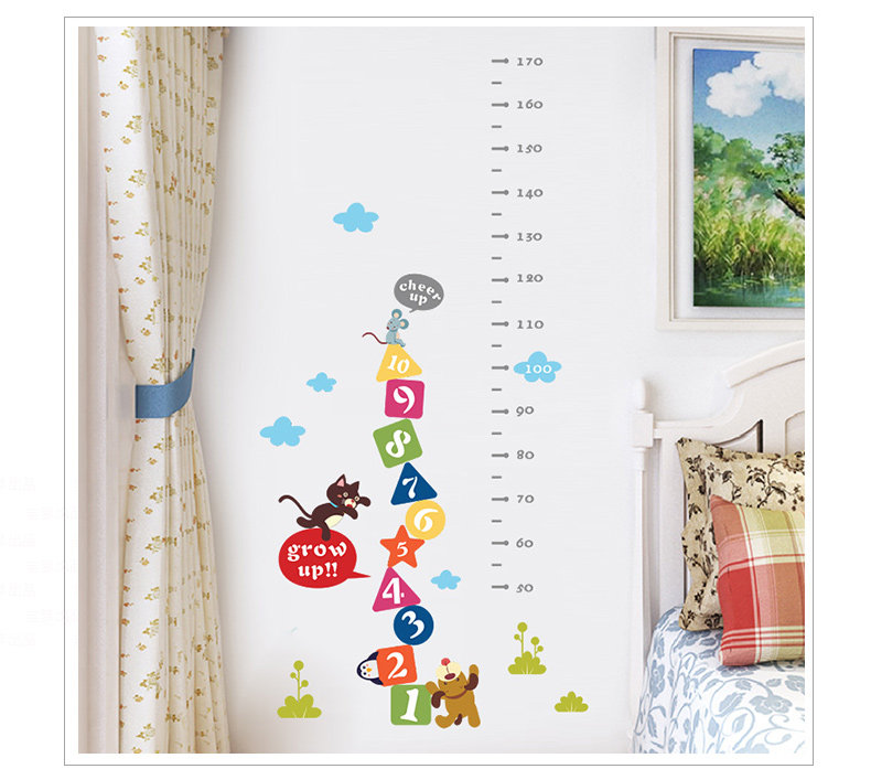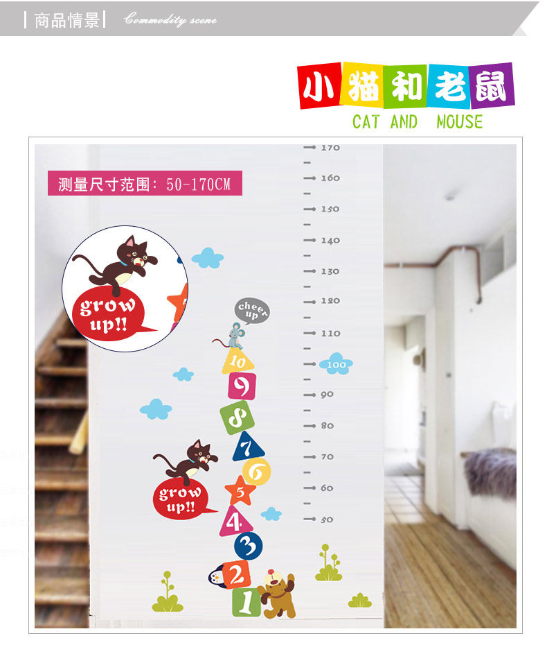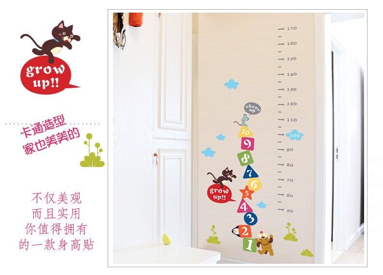 可爱卡通动物小猫老虎墙贴身高贴量身高贴测量身高尺幼儿园装饰贴
