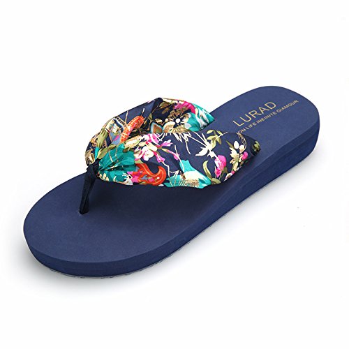 LURAD Women's Floral Summer Satin Wedge Flip Flops