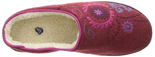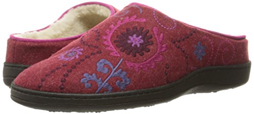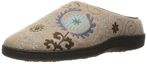 -. Feature : Backless slipper featuring patterned wool upper and rubber indoor/outdoor sole / Multi-layer cushioning heel to toe / Built-in arch support