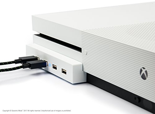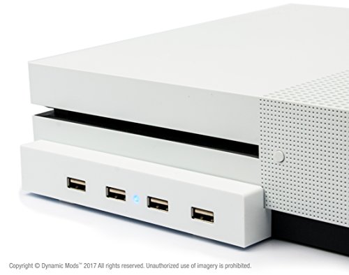 -. Binding : Video Game -. Brand : DynamicMods -. EAN : 0780305289651 -. Feature : BUYERS PLEASE NOTE: Xbox One S console, controller & cable NOT INCLUDED / CHARGE ALL YOUR ACCESSORIES: 4 USB 2.0 ports allow you to charge multiple peripherals at once / PERFECT EXPANSION SOLUTION: Quickly and easily mounts into the front USB port of your / SLEEK MODERN DESIGN: Designed to blend in discretely with your Xbox One S White console, featuring a blue power indication LED -. HardwarePlatform : Xbox One S -. Label : DynamicMods -. Manufacturer : DynamicMods -. MPN : DM-USBHUB-XB1S-WHITE -. PackageQuantity : 1 -. PartNumber : DM-USBHUB-XB1S-WHITE -. ProductGroup : Video Games -. ProductTypeName : VIDEO_GAME_ACCESSORIES -. Publisher : DynamicMods -. Studio : DynamicMods -. Title : 4 Port USB Hub for the Xbox One Slim by Dynamic Mods – Expands the front facing XB1 slim USB to 4 USB 2.0 ports -. UPC : 780305289651