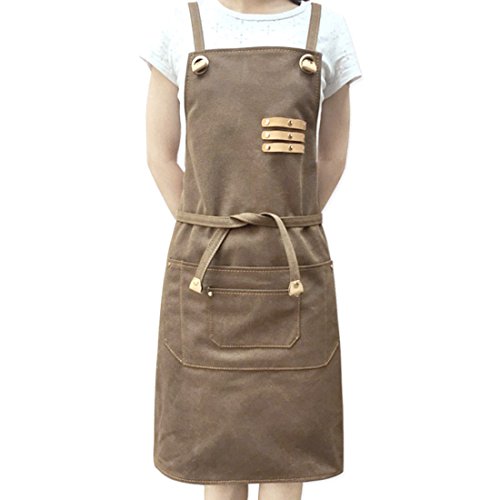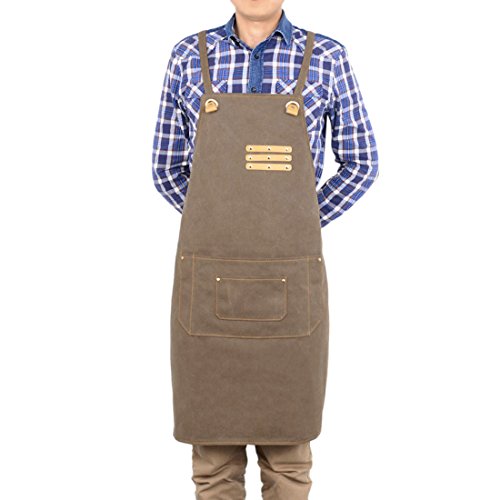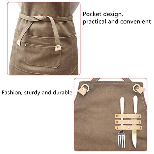 Pinji Canvas Aprons for Men and Women Barbeque Adjustable Bibs Chef Apron With Pockets Unisex Home Kitchen Restaurant Work Apron Khaki