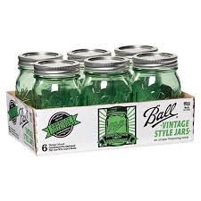Ball Heritage Collection Quart Jars with Lids and Bands, Green, Set of 6