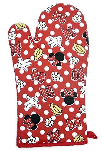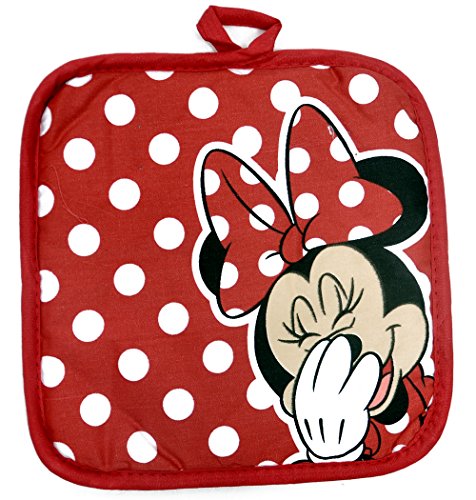 Disney Oven Mitt Pot Holder & Dish Towel 3 pc Kitchen Set (Minnie Mouse Red)