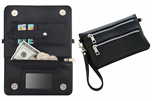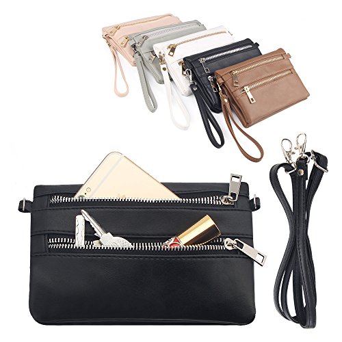 -. Feature : Dimensions: 7.8" x 4.7" x 0.8" / Double magnetic closure, more secure and firm for your belongings. / Spacious Interior: 6 credit card slots, 1 clear license/ID window, 3 zipper compartment, comes with detachable wristlets and adjustable shoulder strap. / Versatile Clutch Wallet / Shoulder Crossbody Bag / Wristlet Purse Design for different occasions, both the strap are removable. / Special 3-Way Wallet with Shoulder Strap for multi-purpose carrying, super functional for everyday use.