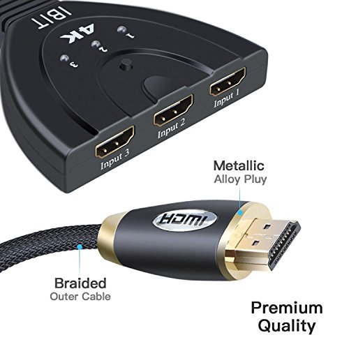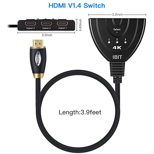 IBIT 3 Port HDMI Switch 4K@30Hz Allows Switch 3 Source HDMI Devices to 1 HDMI Display And Supports Resolutions up to 4K@30hzIt Designed with Longer 4 FT Pigtail Cable(braiding) for More Convenient Use,Automatic Input Switching is Supported When Powering ON/OFF Different HDMI Input Devices.