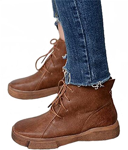 (PPXID)/Women's/Boat Shoes/DIRECT FROM USA/PPXID Women's British Retro Style Platform Plush Inside Lace Up Ankle Boots
