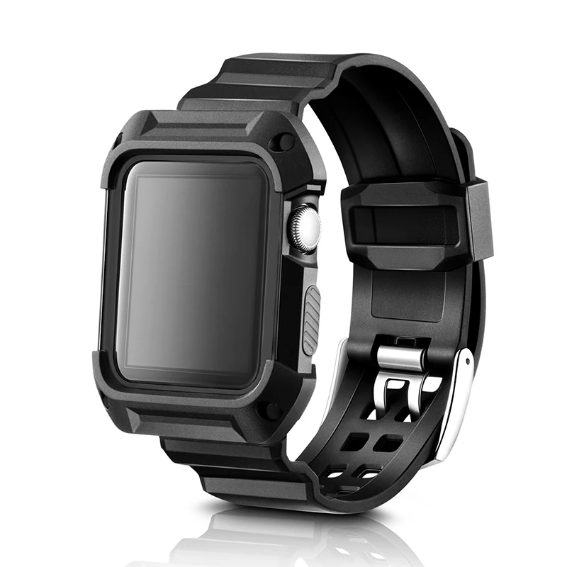 상품 내용 애플 시계 케이스 + 밴드 통합 호환 시리즈 1/2 견고한 시계 밴드 스트랩 38/42 미리메터 더블 핀 버클 TPU 케이스