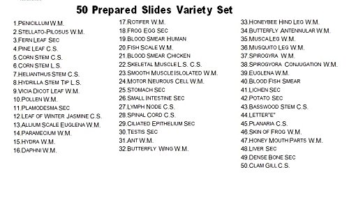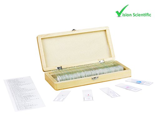 Vision Scientific VS50 Piece Slide Set, 50 Prepared Glass Microscope Slides, General Biological/Scientific Application, Shatterproof Box with Interior Padding