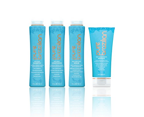 -. Title : Pure Brazilian - 4 Piece Essential Home Care Kit - Anti Frizz Serum, Shampoo, Conditioner, And Deep Conditioning Masque- TRAVEL SIZE