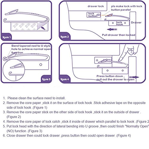 Widely used in most furniture with drawers, but need some space to install it (Interlayer Space>1.3"). Convenient and efficient for your home safety. Putting the locking head into U-slot then you can get NORMALLY OPEN, that function can be used when babies are not with you adults.