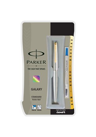 PARKER Galaxy Stainless Steel Gold Trim Roller Ball Pen