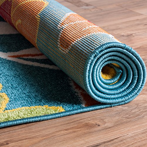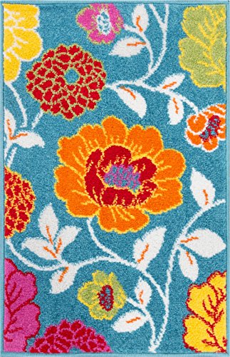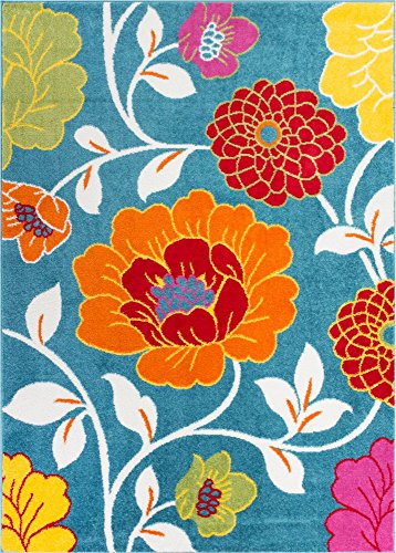 Extremely durable and soft area rug perfect for the living room, dining room, kitchen, playroom, kids room, den, entryway, or foyer. This rug adds a pleasant touch to any floor with its simple, stylish and clean design. The bright, multicolor natural floral pattern is woven in a palette of blue, orange, red, yellow, green, and pink colors that really pop. Stain and fade resistant. The 100% jute backing is safe for wood floors and all four sides of the rug are serged for improved durability.Feature