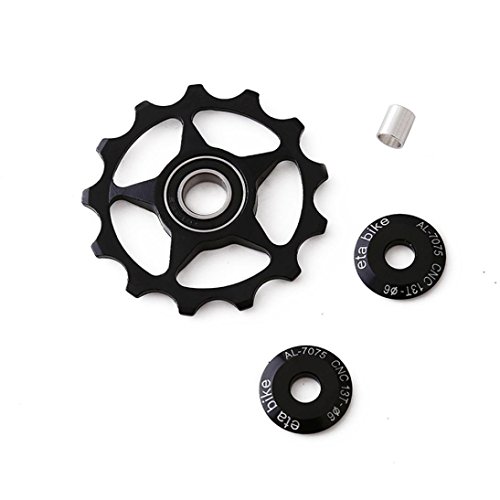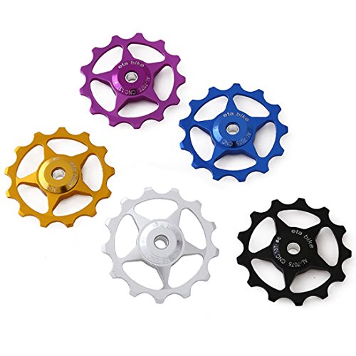 Studio : Boddenly Publisher : Boddenly Product Description Specifications ◆ 100% brand new and high quality ◆ Product: Bicycle rear derailleur pulley wheel ◆ Size: 13 T ◆ Material: Aluminum alloy ◆ Setting for 4/5/6mm spindle shaft rollers ◆ Apply for most rear derailleur in the market, support 7/8/9/10 speed ◆ Transmission for a bicycle,ultra durability ◆ Color: Black, Silver, Blue, Purple, Gold ◆ Weight:9.5g Included: 1 x Bicycle Pulley Wheel