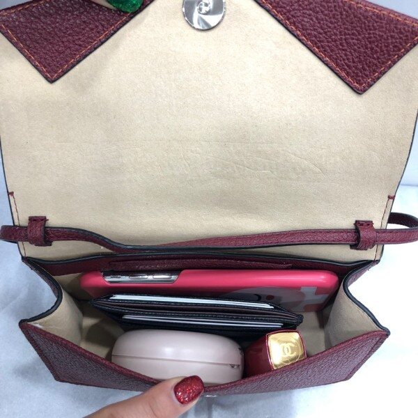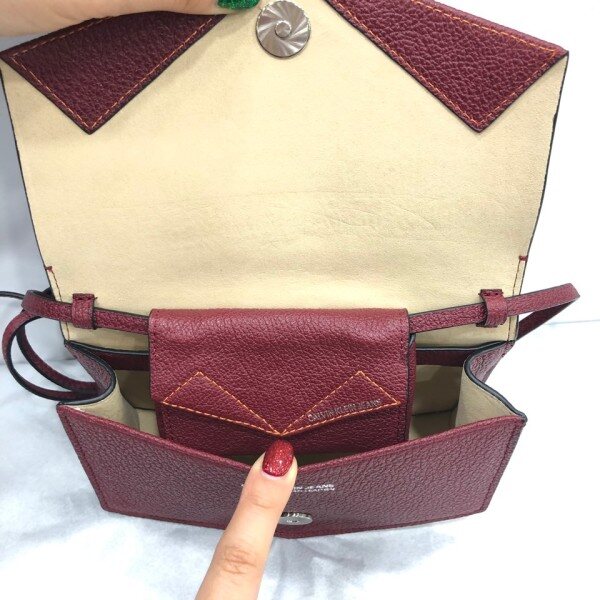 염소 가죽의 촉감과 결을 살린 고급스러운 소재에 자석 형식의 덮게, 외부 여분의 슬립 포켓과 1개의 탈부착 가능한 미니 지갑으로 구성.