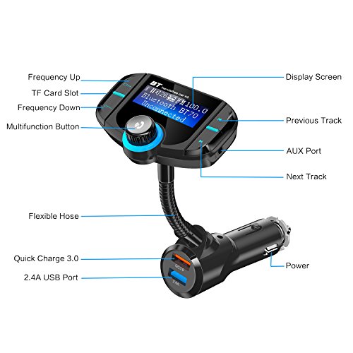 Package Content 1× Car Bluetooth FM Transmitter 1× AUX Cable 1× 3A Fuse 1× User Manual 0