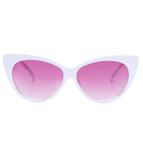 Pro Acme Super Cute Vintage Inspired Fashion Mod Chic High Pointed Cat Eye Sunglasses (White Frame/Pink Gradient Lens)