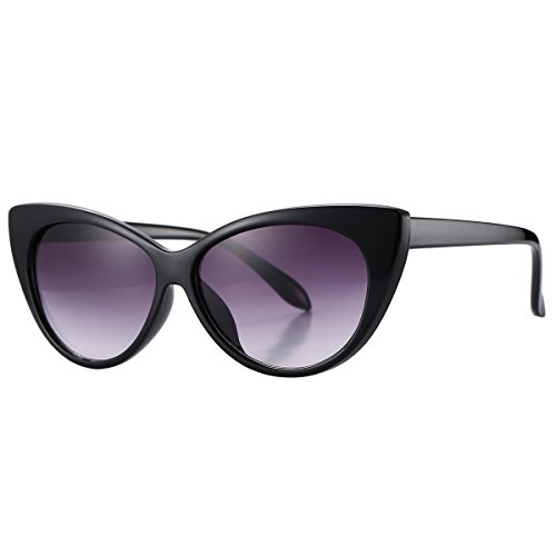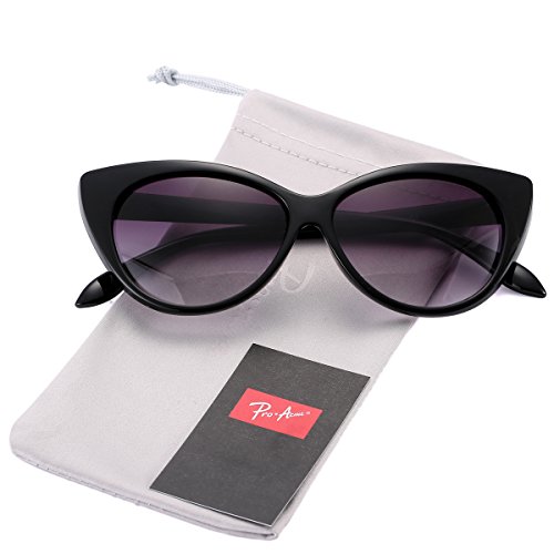 Pro Acme Super Cute Vintage Inspired Fashion Mod Chic High Pointed Cat Eye Sunglasses (Black Frame/Grey Lens)
