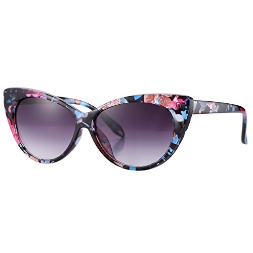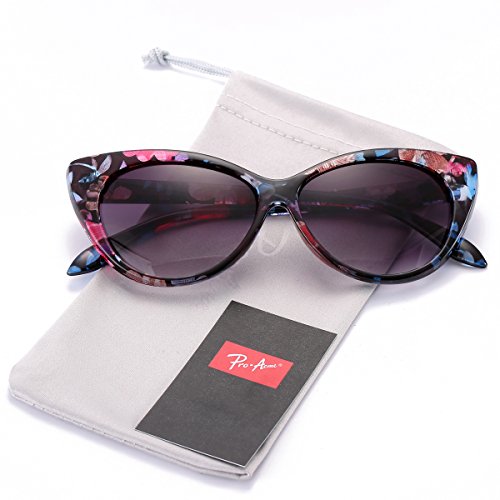 Pro Acme Super Cute Vintage Inspired Fashion Mod Chic High Pointed Cat Eye Sunglasses (Floral Frame/Grey Lens)