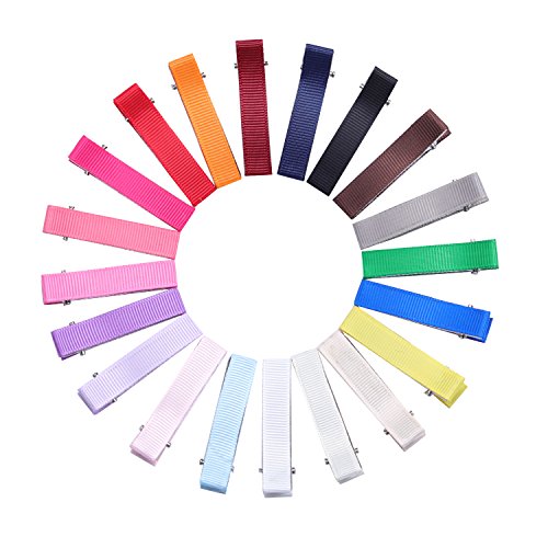 KOONY Toddler Baby Hair Clips Grosgrain Ribbon Lined Alligator Clips 1.9" 20pc