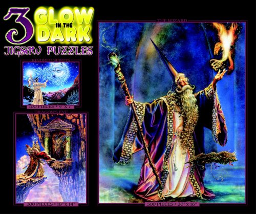 -. Title : 3 in 1, 100/300/500 Pieces Glow in the Dark Puzzle - The Wizard, Dragon's Eye, Kindred Spirits