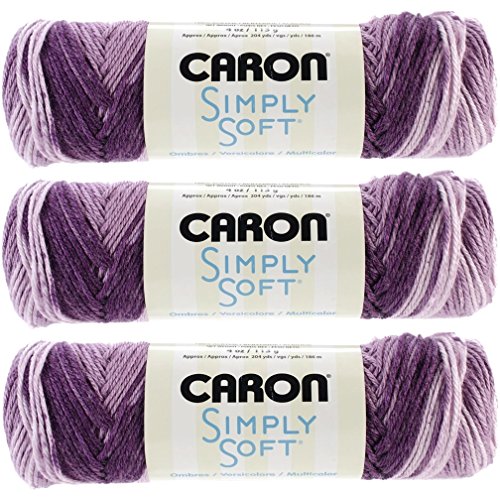 - Price is for 3 skeins of Caron Simply Soft Ombres Yarn Grape Purple 294008-8315 (UPC 057355380127) for a total of 624 yards/12oz (570 meters/339gr) knitting yarn
