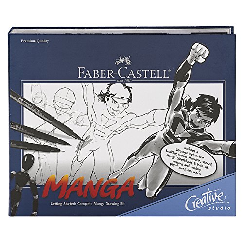 - Includes 28-page fully illustrated instruction booklet 20-page 7 in. x 9 in. sketch pad, Manga mannikin, stencil with Manga shapes, ruler and speed lines, three PITT artist pens in black superfine, black brush and warm gray III, Goldfaber graphite HB pencil, pencil sharpener and eraser