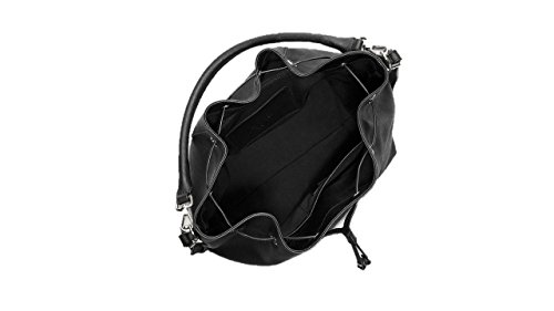 Description -saffiano leather bucket bag -removable single barrel top handle + shoulder strap -drawstring closure -logo plaque on front -removable hanging signature charm -interior zip pocket -2 open pockets -2 card slots + id window -fully lined Fabric + Care -saffiano leather -imported Fit + Sizing -6.5" handle drop -16" shoulder drop -15" wide x 11" tall x 6" deep Style Number - Style Number 36185284Feature
