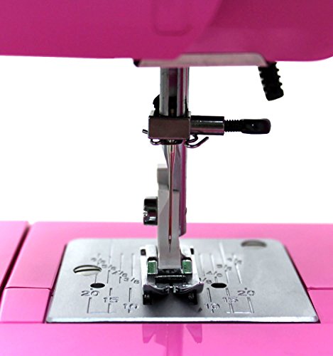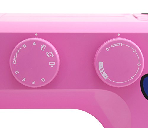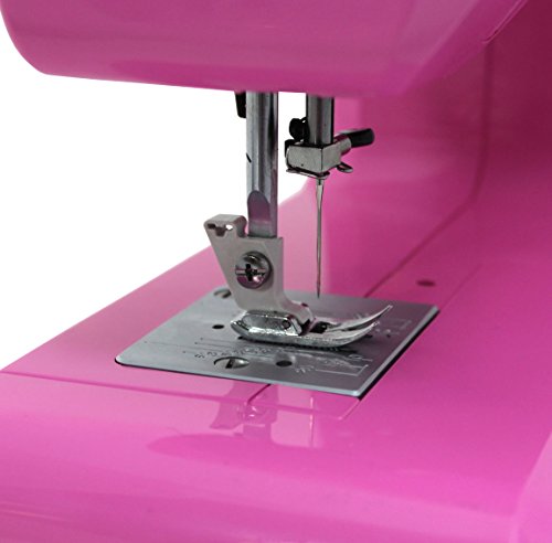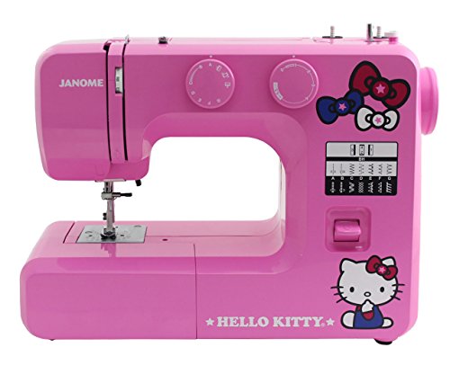 Janome Pink Hello Kitty Sewing Machine Just the basics! The Hello Kitty 14412 is a great machine for someone who is just starting out, or who wants a machine that can tackle any of their basic sewing needs. Bonuspack Includes: Two Packs of Organ Needles, 10 Plastic Bobbins, Bobbin Storage Case and Janome Sewing Machine Tote Bag in Black Floral with Floral Pattern. Features: Front loading oscillating hook bobbin Metal Frame 12 Built-in stitches 1 Four-step buttonhole Manual thread tension control Snap on presser foot 3-Piece feed dog Free Arm Easy Reverse lever Push/Pull Bobbin Winding Extra High Presser Foot Lift Stitch Selection dials Built in sewing light Maximum stitch width: 5mm Maximum stitch length: 4mm Included Accessories: Bobbins (4) one in machine Darning Plate Seam ripper Set of needles Sliding buttonhole foot Adjustable blind hem foot Zipper foot Zig zag foot Foot control Instruction manual Janome Manufacturer's warranty: 5 Year mechanical 2 Year Electronic 1 Year laborFeature