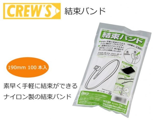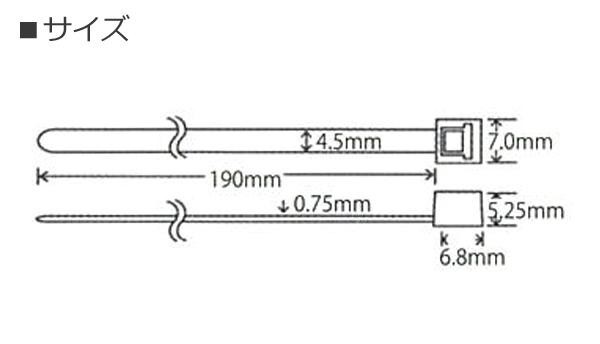 fk094igrjs一度締め付けてロックすると戻らないバンドで、伸び縮みせずしっかりと結束いたします サイズ 長さ190mm、幅4.5mm(1本) 個装サイズ:15×30×2cm 重量 1.2g(1本) 個装重量:125g 素材・材質 ナイロン 仕様 100本入り 最大結束径:約30mm 製造国 中国 素早く手軽に結束ができるナイロン製の結束バンドです 一度締め付けてロックすると戻らないバンドで、伸び縮みせずしっかりと結束いたします