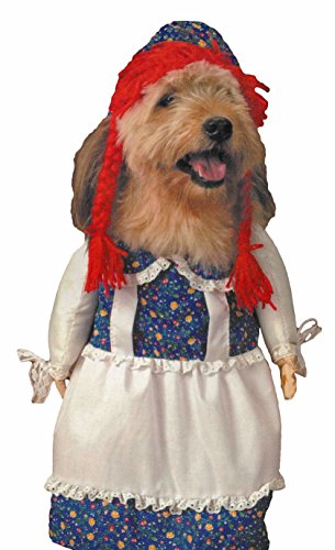 -. Brand : Pet Frenzy -. Department : womens -. Feature : Hysterical Rag Doll costume for dogs / Perfect for Halloween / Costume includes shirt dress with attached arms and hat with attached yarn wig. / Small Size fits Bichon-Frise, Terrier, Chihuahua, Fox Terriers, Toy Poodle etc. Medium fits 14" to 18" neck for breeds such as Border Collies, Cocker Spaniels, etc. And Large over 18" neck. -. ProductGroup : Apparel -. ProductTypeName : ADULT_COSTUME -. Title : Ragdoll Pet Costume