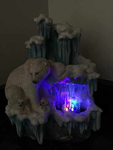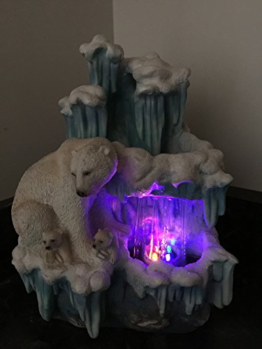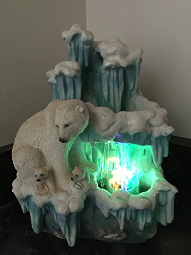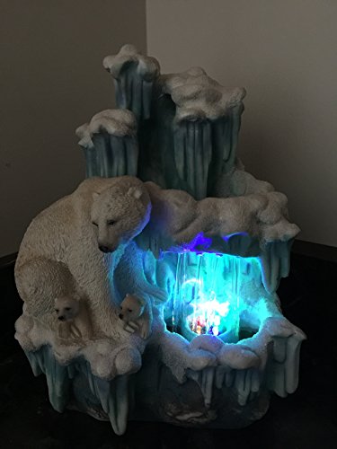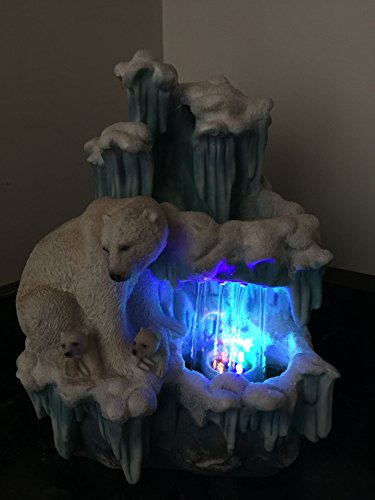 SINTECHNO SNF12076-3 Artistic Sculptural Mother Polar Bear with Her Cubs on Iceberg Tabletop Water Fountain
