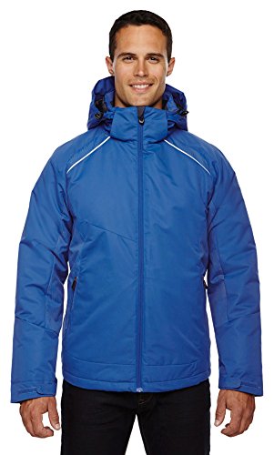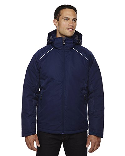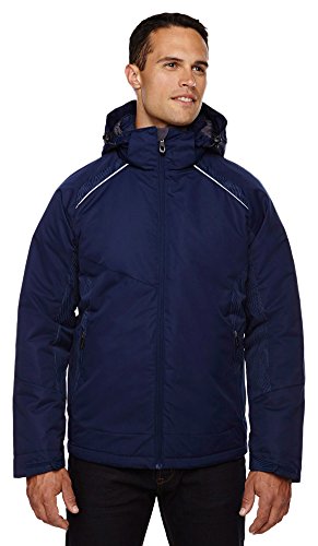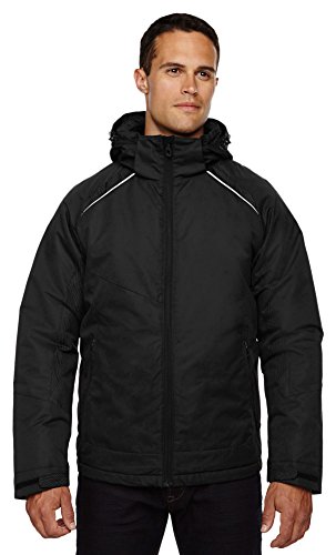 Binding : Apparel Product Description INSULATION: 140 gsm in body; 80 gsm in sleeves, hood and collar; Water resistant finish; 100% polyester full dull dobby, 4.6 oz./yd2/155 gsm; LINING: 100% polyester taffeta with embossed print; inside storm placket with brushed tricot chin guard; thermal brushed tricot-lined collar and pockets; centre front reverse coil zipper; zip-off adjustable thermal hood with back shockcord ; adjustable shaped cuffs with tabs and stretch storm cuffs; lower pockets with reverse coil zippers; inside security pocket; thermal retention shockcord at hood and drop back hem; flat reflective piping at front and back; details at side panels, sleeve panels, shoulder yoke and hood?; audio port access through inside chest pocket; back yoke with asymmetric design; 0