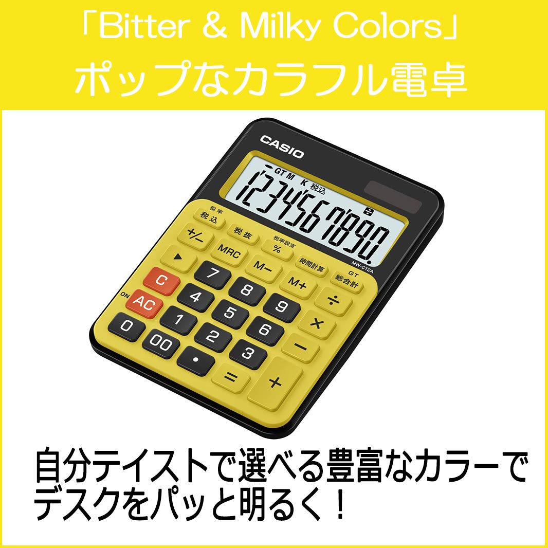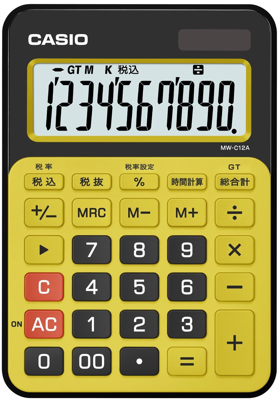 色:スパイスイエロー ●桁数: 10 ●メモリー:2 ●電源種類:T・W・P(太陽電池と補助電池の併用)(LR44) ●電池数:1 ●電池寿命:約3年 ●大きさ(奥行×幅×高さ mm):149.5×104.5×22.1 ●質量(g):125 機能:税計算,計算状態表示,時間計算,マルチ%,四則定数計算,概数計算,桁下げ,(シフト),+/-(サインチェンジ),キーロールオーバー機能(早打ち機能),ツーゼロキー