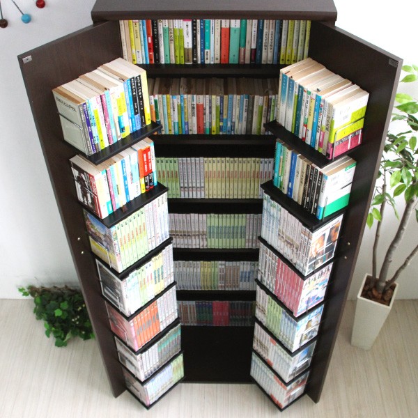 ■最大収納DVDで400枚、CD310枚(奥面棚のみ) コミック400冊収納可能な書棚ストッカー収納庫