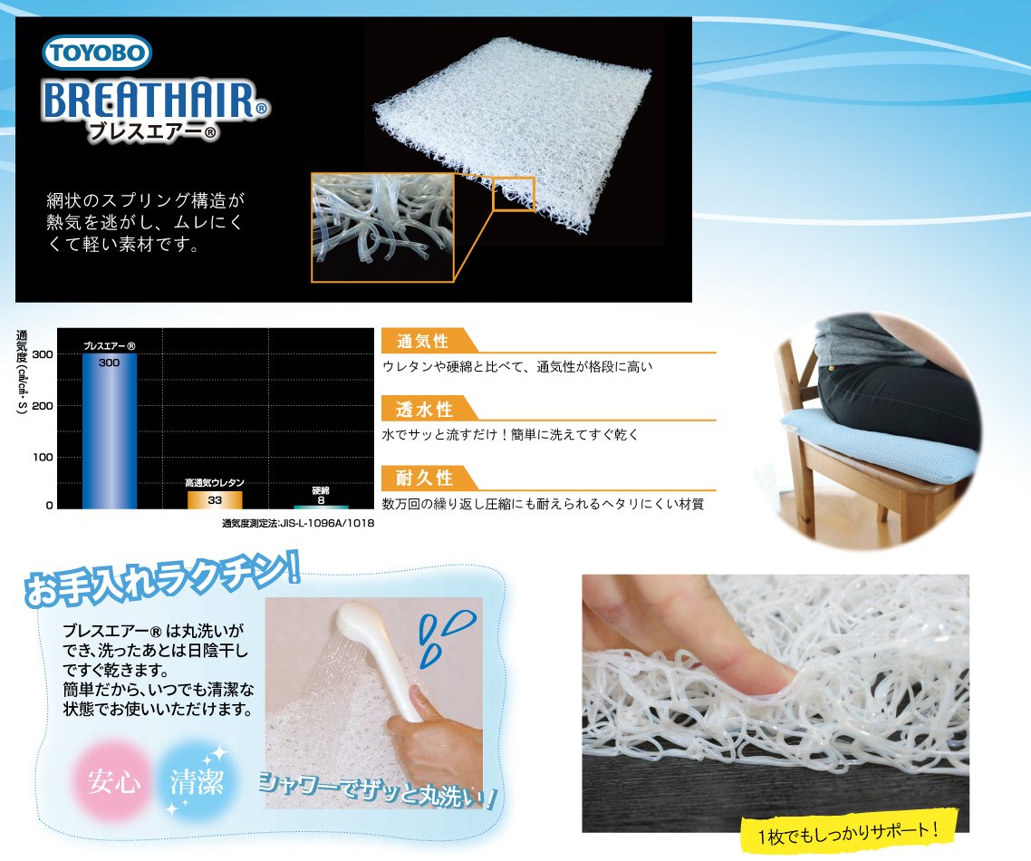 We are using Toyobo's breath air which excels at all such as antibacterial properties.