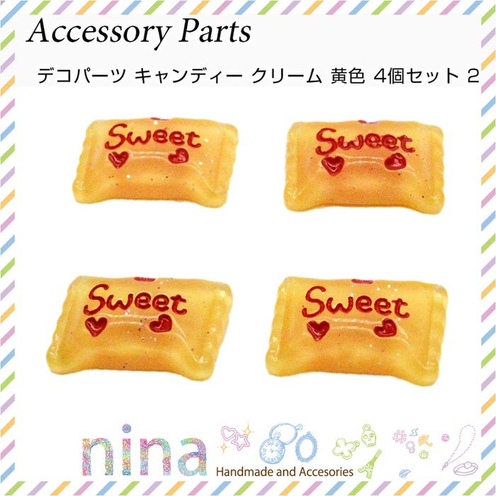 ■商品名:デコパーツ キャンディー クリーム 黄色 4個セット