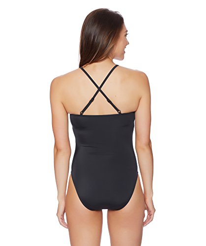 Studio : Nautica Women's Swimwear Publisher : Nautica Women's Swimwear Binding : Apparel Product Description A little black designer one piece is a must-have in every swim wardrobe! the Nautica soho solids one high neck one piece offers that coveted high neck design with mesh detail. Adjustable straps crisscross to the back for the support you need and moderate seat coverage along with built-in soft cups allow for desired comfort. 0