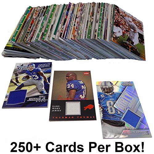 NFL Football Card Relic Hit Box with 250 Plus Cards and 3 Relic Cards Per Box, Includes 3 Relic Jersey, Football, or Autograph Cards, Perfect for NFL Collector or Fantasy Football, Every Box Unique