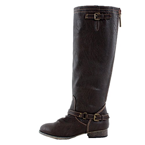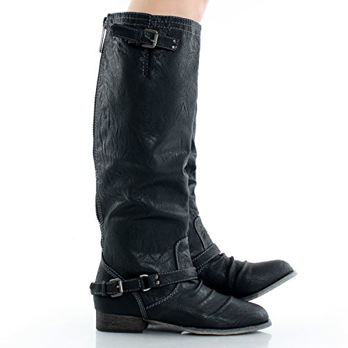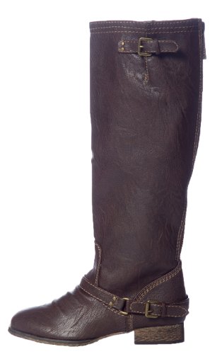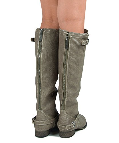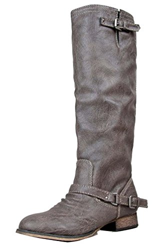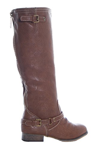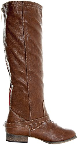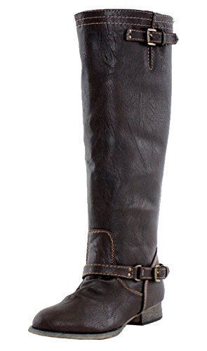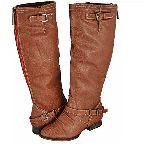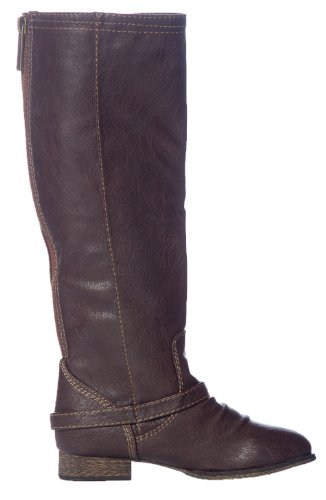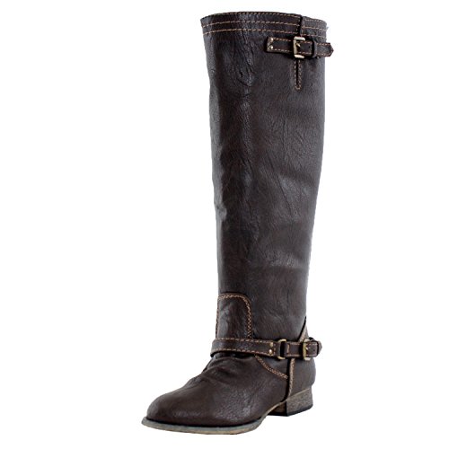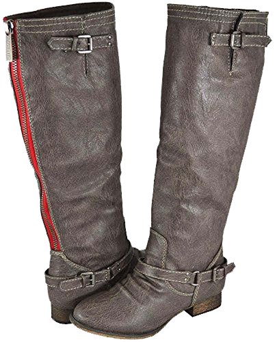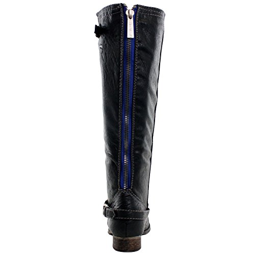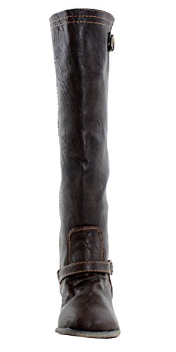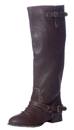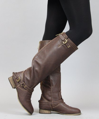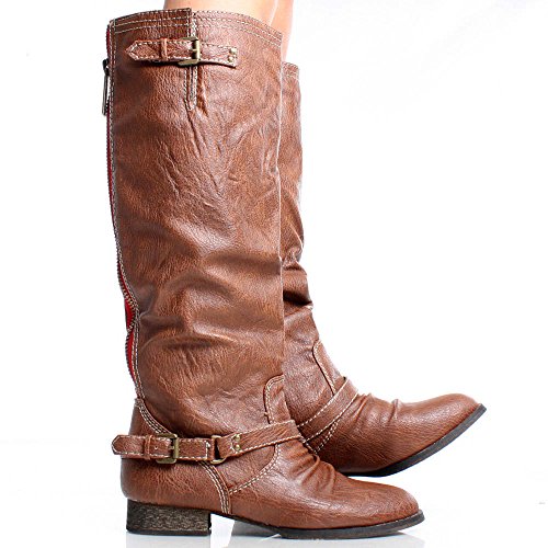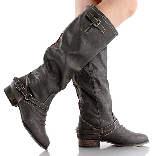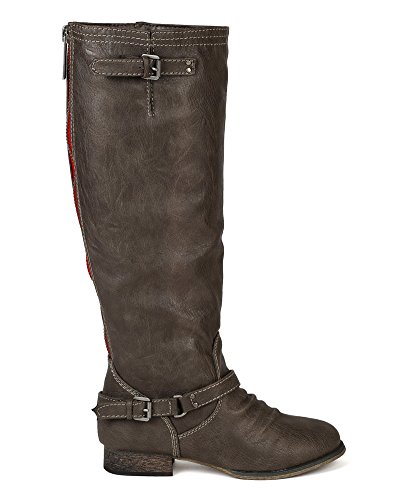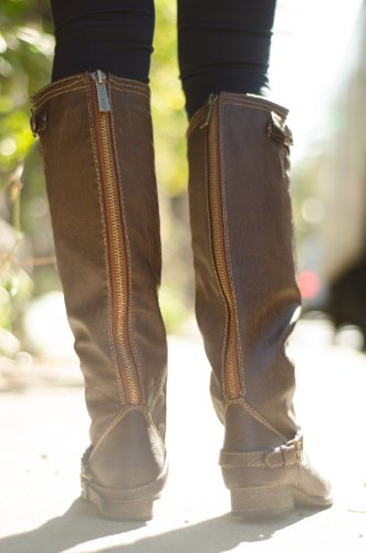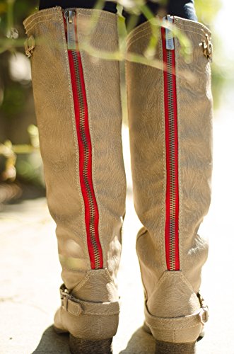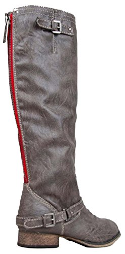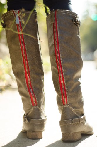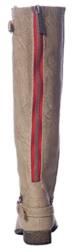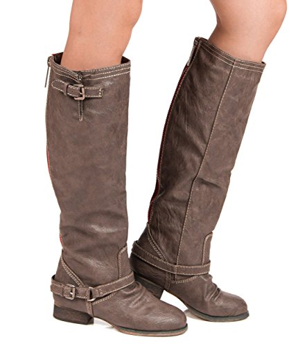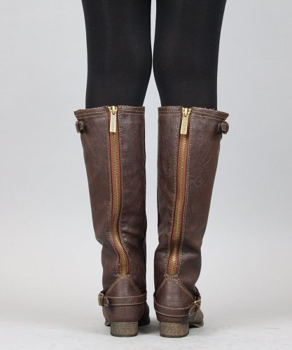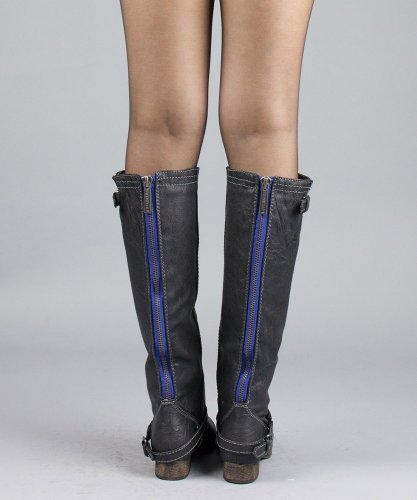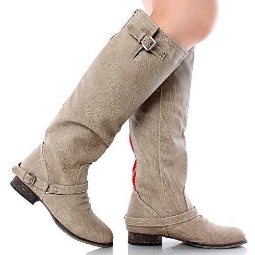 | Breckelles Women's OUTLAW-81 Contrast Zipper Casual Riding Boots |