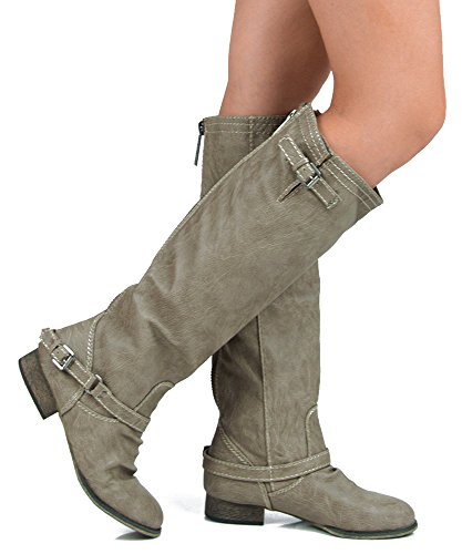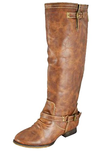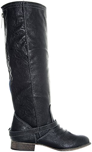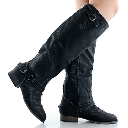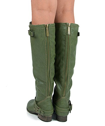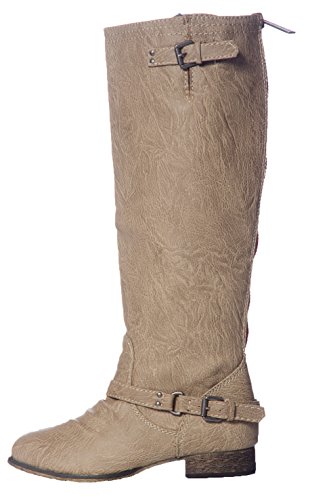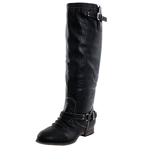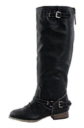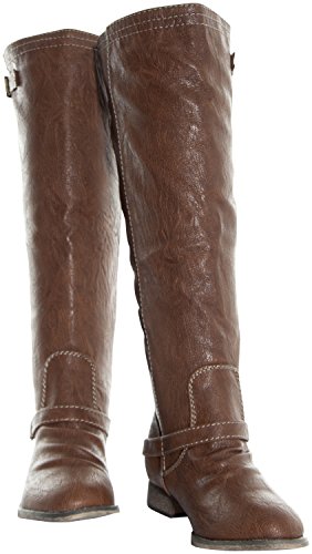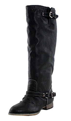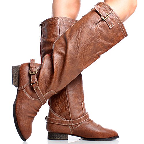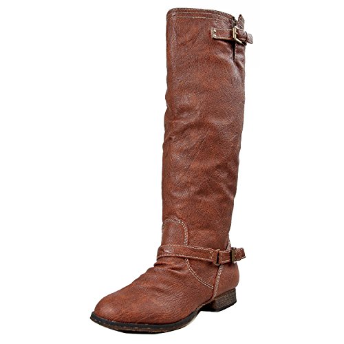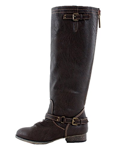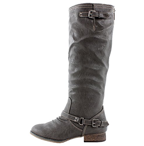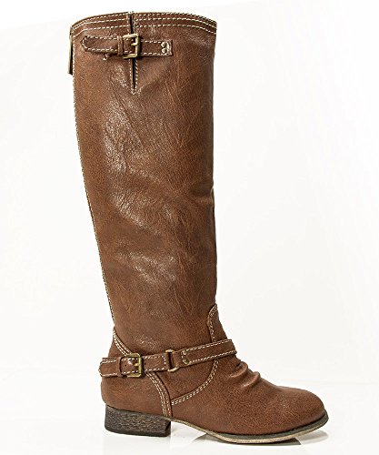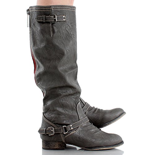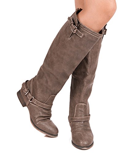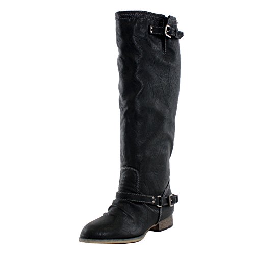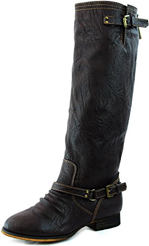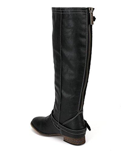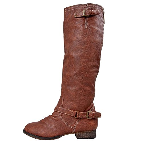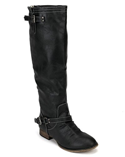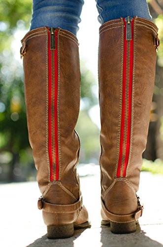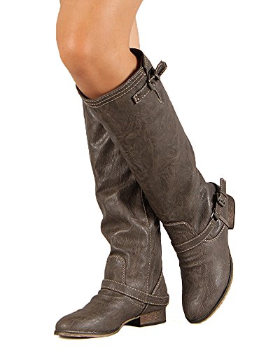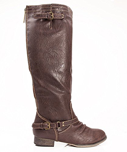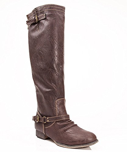 | Breckelles Women's OUTLAW-81 Contrast Zipper Casual Riding Boots |