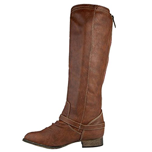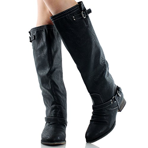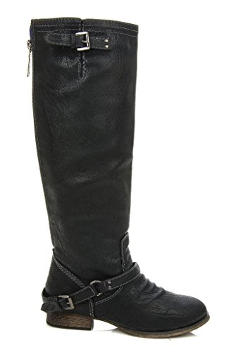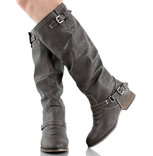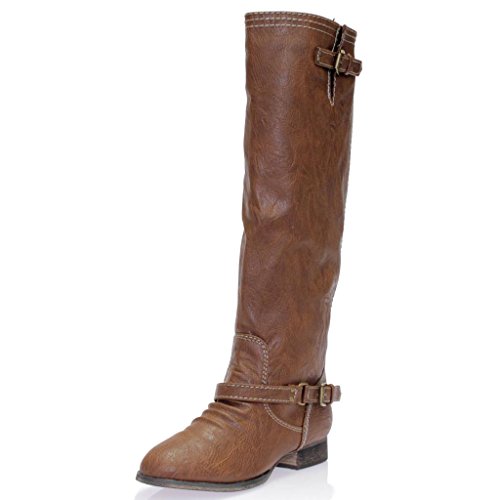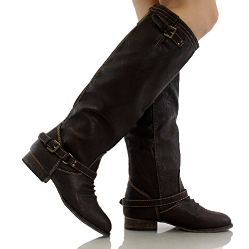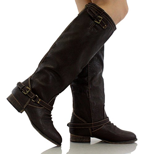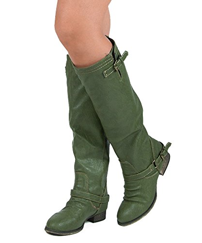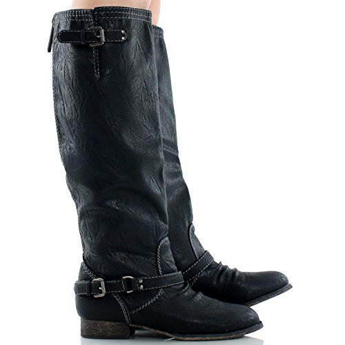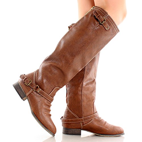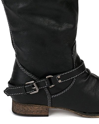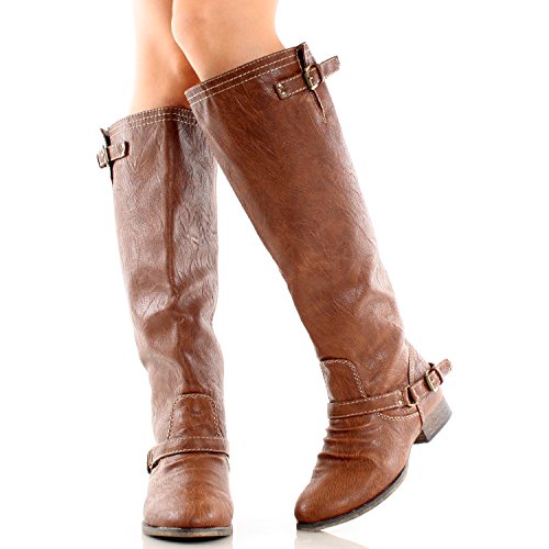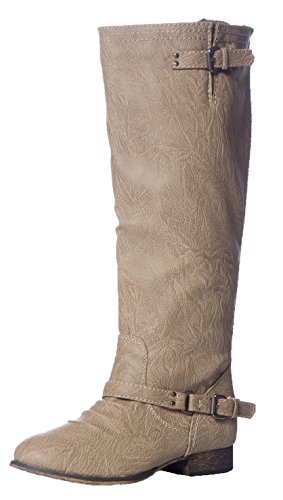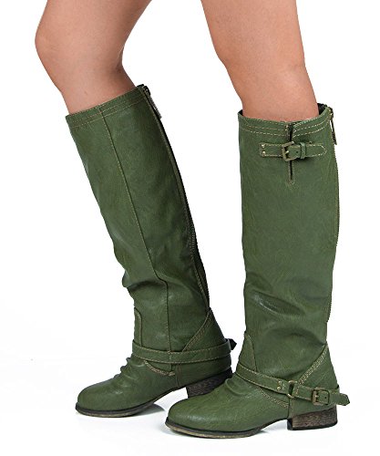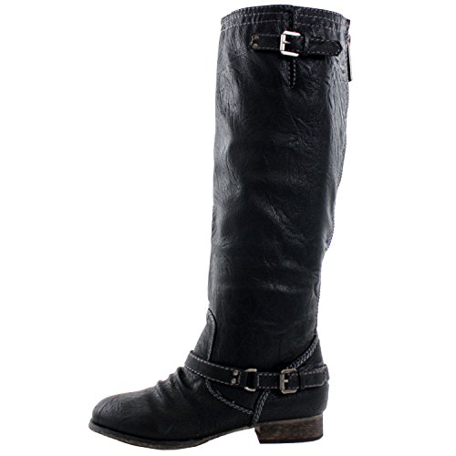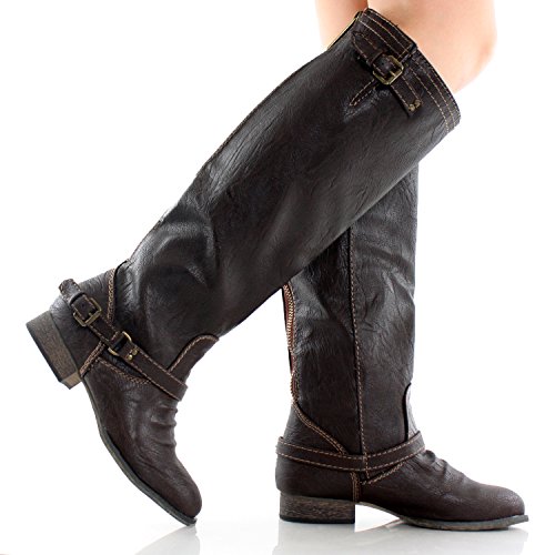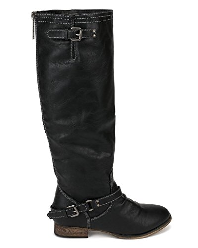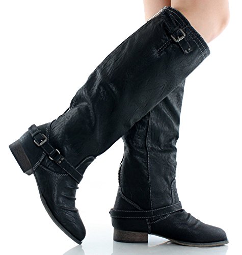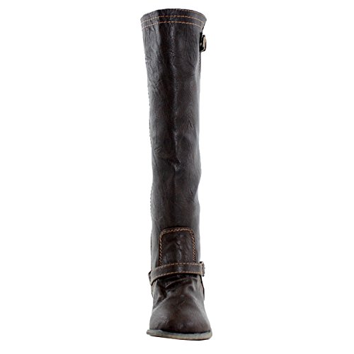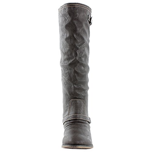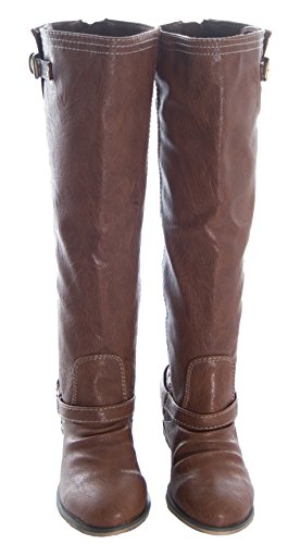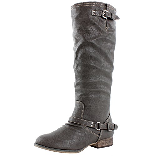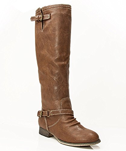 | Breckelles Women's OUTLAW-81 Contrast Zipper Casual Riding Boots |