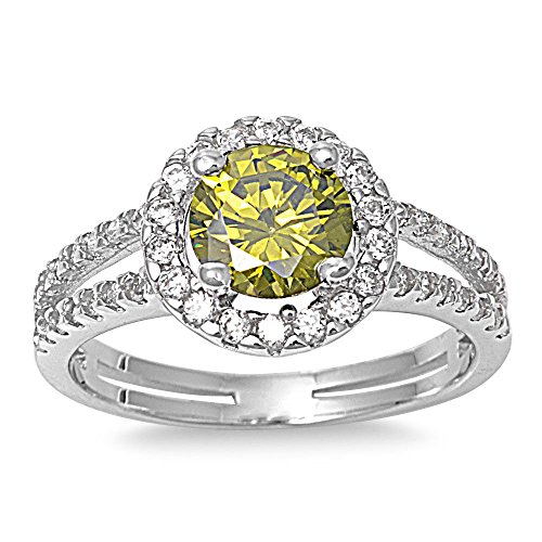 -. Title : Sterling Silver Simulated Peridot Halo Ring (Size 5 - 10)
