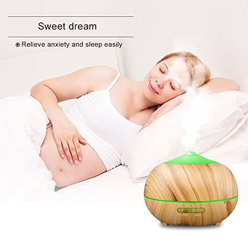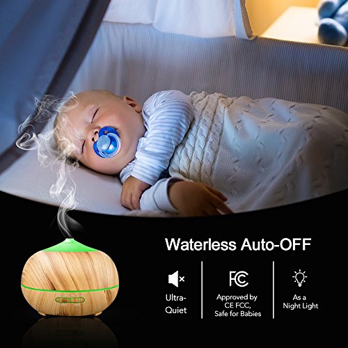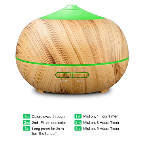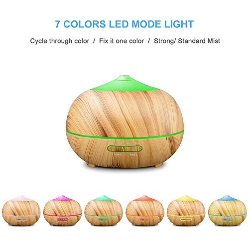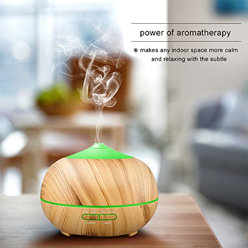 Uni Home 450ml Aromatherapy Essential Oil Diffuser, Ultrasonic Aroma Humidifier (Up to 8H Use, Mist Control, Waterless Auto Shut-Off, 4 Timer Settings, 7 Color LED Lights (Yellow Wood Grain)