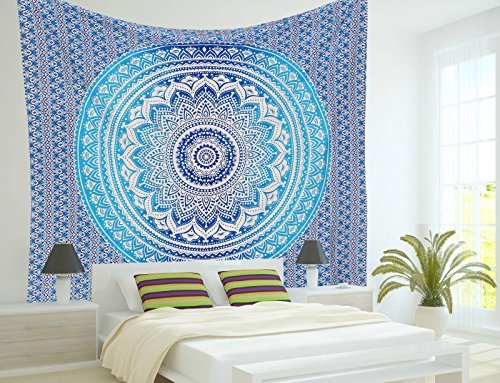 Studio : Montreal Tapassier Publisher : Montreal Tapassier Binding : Kitchen Product Description * Beautiful Indian Screen Printed Cotton Elephant tree of life Tapestry or Bed Cover in Twin size. * The fabric has been stone washed and on top of the Elephant Mandala Design was screen printed in sharp color. * Front side has Blue Base on Multi Color Pattern have been crafted. * This gorgeous piece of art can be used as Bedspread, Bed Cover, Table Cloth, Curtain and of course as a Tapestry or a Wall Hanging. * Add an ethnic feel to your room with this cotton handmade wall hanging. Go for a dramatic makeover of your wall and this tapestry would become a conversational piece of art. A must have in any season for all ethnic savvy ones. This is a rare beauty not to be missed, a genuine collector's item the result of masterly workmanship. * This Tapestries are completely screen printed in traditional Indian method and takes around a week to complete. 100% Cotton - This tapestries are printed, not quilted or woven. They are hippie Indian tapestries. Thin as sheet. Good, tight power loom construction. Hemmed edges.Each tapestry has its unique imperfections. In some cases what printers would call registration errors are intentionally included on the screen print to simulate hand woodblock prints. Note: Actual Images of items in indirect sunlight are shown above. We follow WYSIWYG "What you see is what you get". The original color of items which you buy may differ minutely from the images due to camera capture sensitivity, lighting even your system screens, so there may be a minor possibility in change of brightness contrast. Depending on the size of products there may be dimension variation because products are made by hand and also variation in weight due to moisture, dryness, gravity and different measuring machines. 0