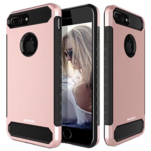 -. Title : iPhone 8 Plus Case, iPhone 7 Plus Case, Mascheri [Carbon Fiber] Shock Absorption Protective Dual Layer Military-Grade Defender Hybrid Case Cover for Apple iPhone 8 Plus / iPhone 7 Plus - Rose Gold