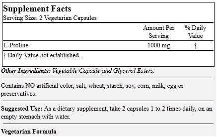 -. Title : L-Proline 500mg (120 Vegetarian Capsules)